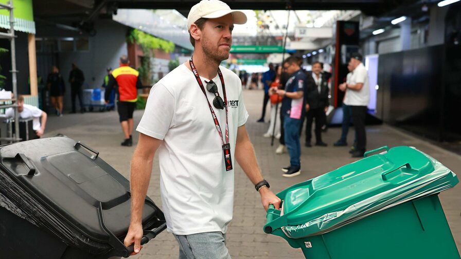В четверг утром Феттель был замечен в паддоке с двумя мусорными баками с надписью «Recyclable», то есть для мусора, подлежащего вторичной переработке, как бумажные газеты, мешки и пакеты из плёнки, стеклянные банки, бутылки.