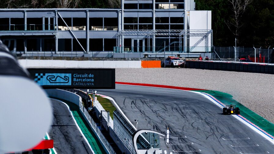 На тестах Ф1 в Барселоне пошёл дождь. На трассе работают всего две команды