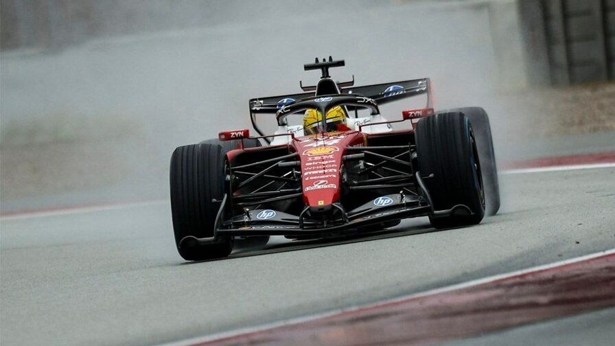 Семикратный чемпион дебютировал на предсезонных тестах в Барселоне во вторник 27 января. Ferrari разделила обязанности между Шарлем Леклером и Хэмилтоном. Леклеру удалось проехать посуху, но трасса уже была мокрой, когда Хэмилтон выехал на трассу во второй половине дня.