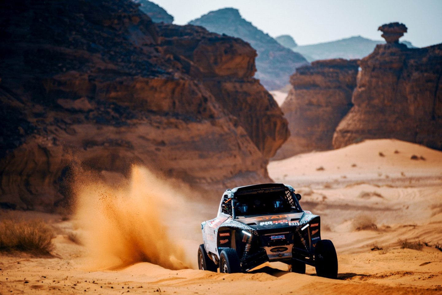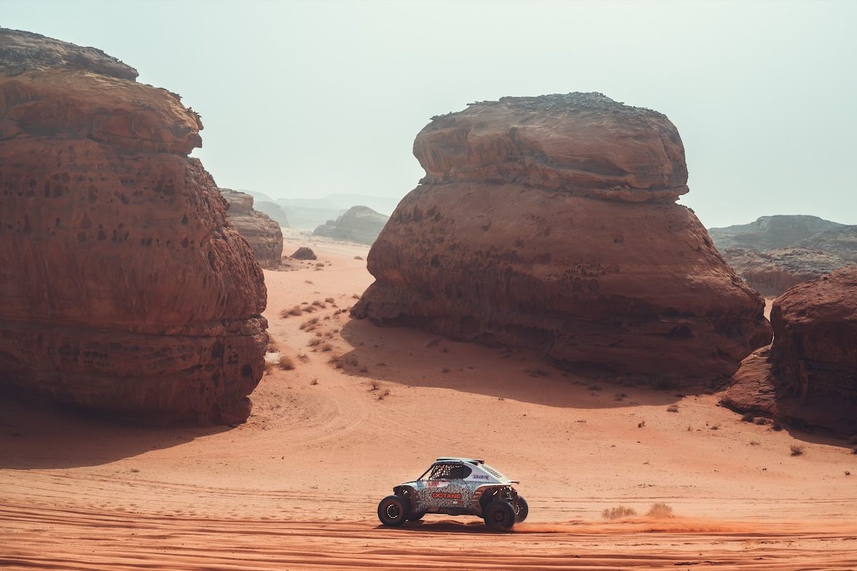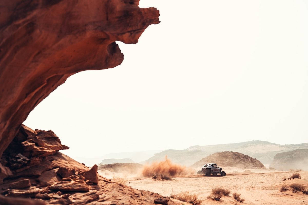 Третий этап проходил по песчаным дорогам одного из самых впечатляющих районов Аль-Улы. С первых километров экипажи оказались в сложном ландшафте песчаных каньонов, который затем сменился скоростными гравийными участками, перешедшими в свою очередь в открытые плато. Здесь особенно важно было держать стабильный темп: рельеф постепенно сглаживался, следы читались плохо, а навигация вплоть до зоны нейтрализации оставалась ключевым фактором.
