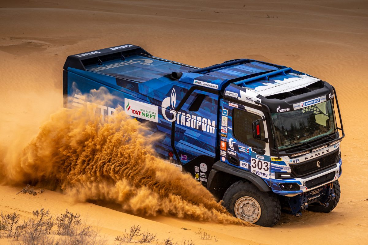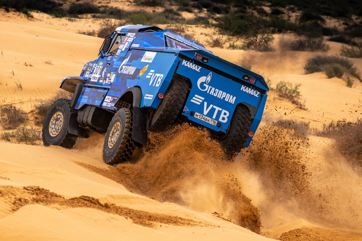 Шесть с половиной минут проиграл Эдуард Николаев, которому пришлось ненадолго останавливаться на трассе для решения технических проблем с топливной системой. Сергей Куприянов на газодизельном КАМАЗе занял пятое место, за ним расположился Дмитрий Авдеев.