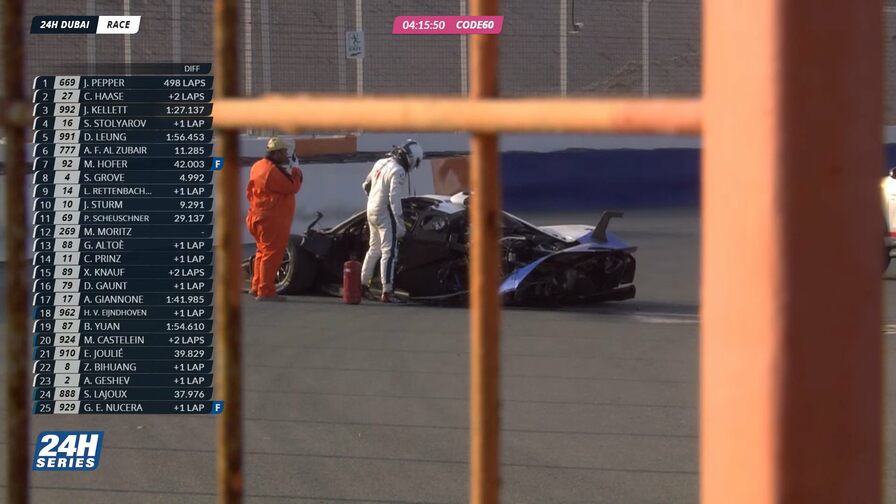 Гонку Rossa завершил эпизод в 10-м повороте трассы. Русинов, находившийся за рулём, сместился вправо, пытаясь избежать контакта с Porsche №929 команды HRT под управлением Джованни Эмануэле Нучеры, который в этот момент обгонял Porsche №939 GP Elite Юкки Хонкавуори. В результате машина Rossa на большой скорости влетела во внутреннюю стену поворота.